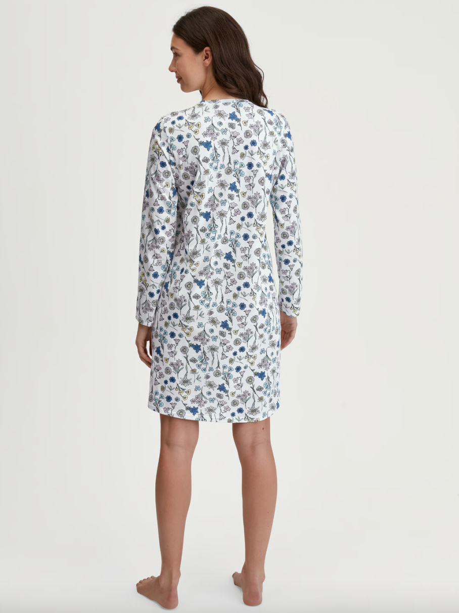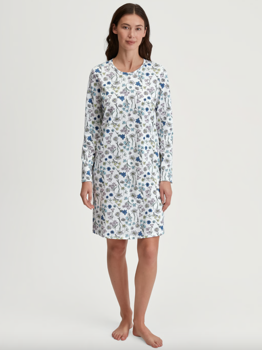 La chemise de nuit Calida Flower Nights en Riviera Blue incarne à la perfection l’équilibre entre élégance, confort et bien-être.