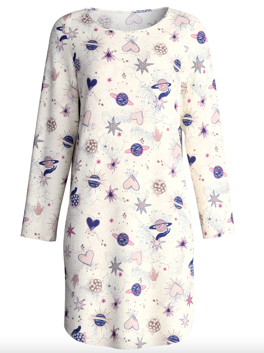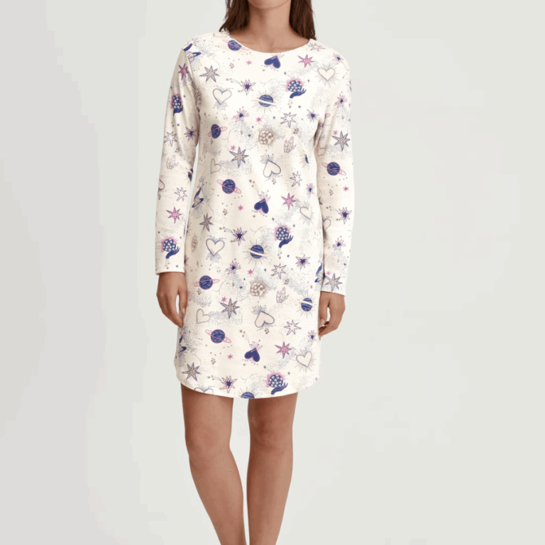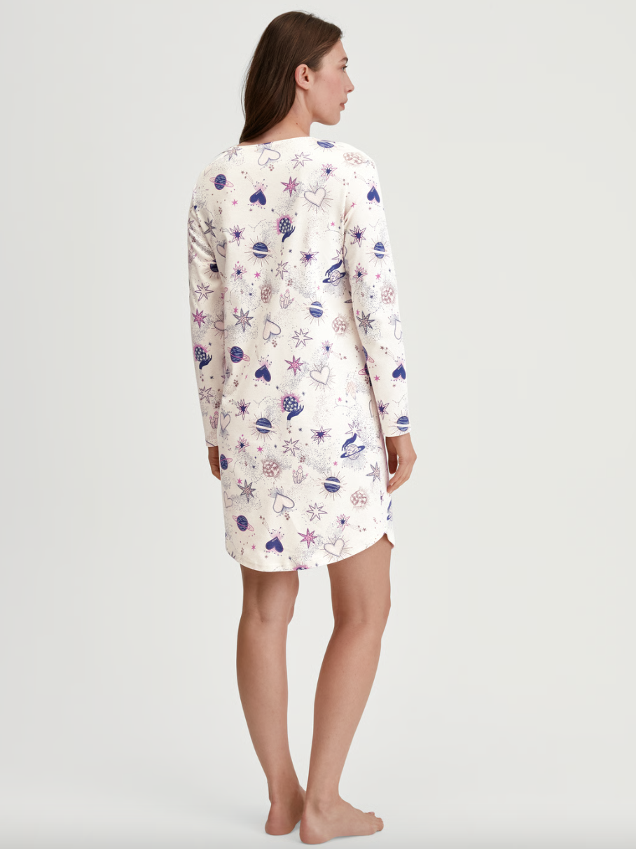 La chemise de nuit manches longues Calida Favourites Universe en Charm Cream conjugue élégance, confort et bien-être.