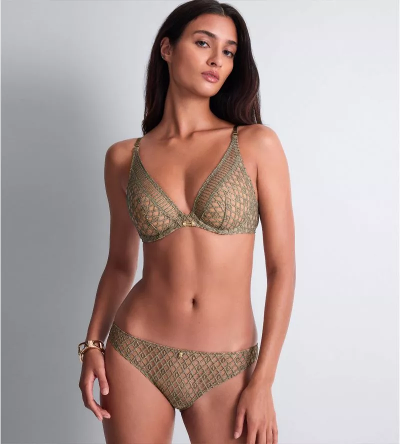 Le Slip Italien Aubade Stardust Dream – Nile Green est une pièce sophistiquée mêlant jeu de transparence, broderie lumineuse et confort absolu.