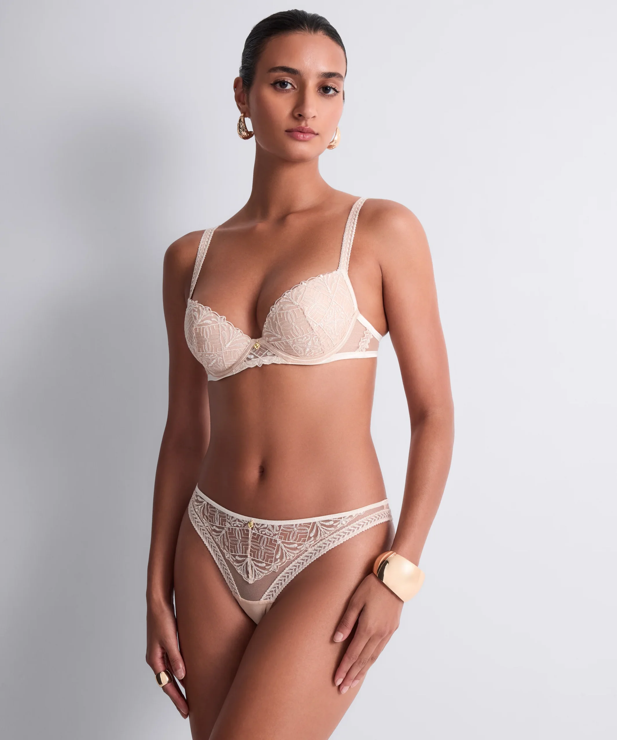 🌺 La dentelle graphique Iconic, véritable signature d’Aubade, dévoile un motif moderne et structuré, sublimé par le coloris Calypso, lumineux et vibrant.